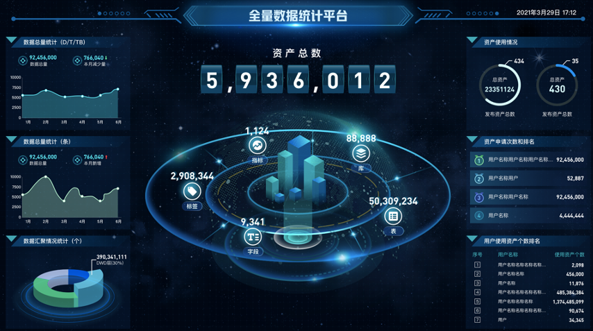 集资产盘点、元数据管理、主数据管理、质量分析、标准沉淀、标签管理、生命周期管理于一体,同时提供多维度标签的数据资产清单,并发布成为数据资产目录,满足各类分析应用的快速搭建。在原有的数据管理体系基础上,数据资产管理平台又逐步增加了对数据治理整体流程的可视化管理及数据资产地图的全方位展示,帮助客户更加清晰直观的掌握管理所属数据资产。