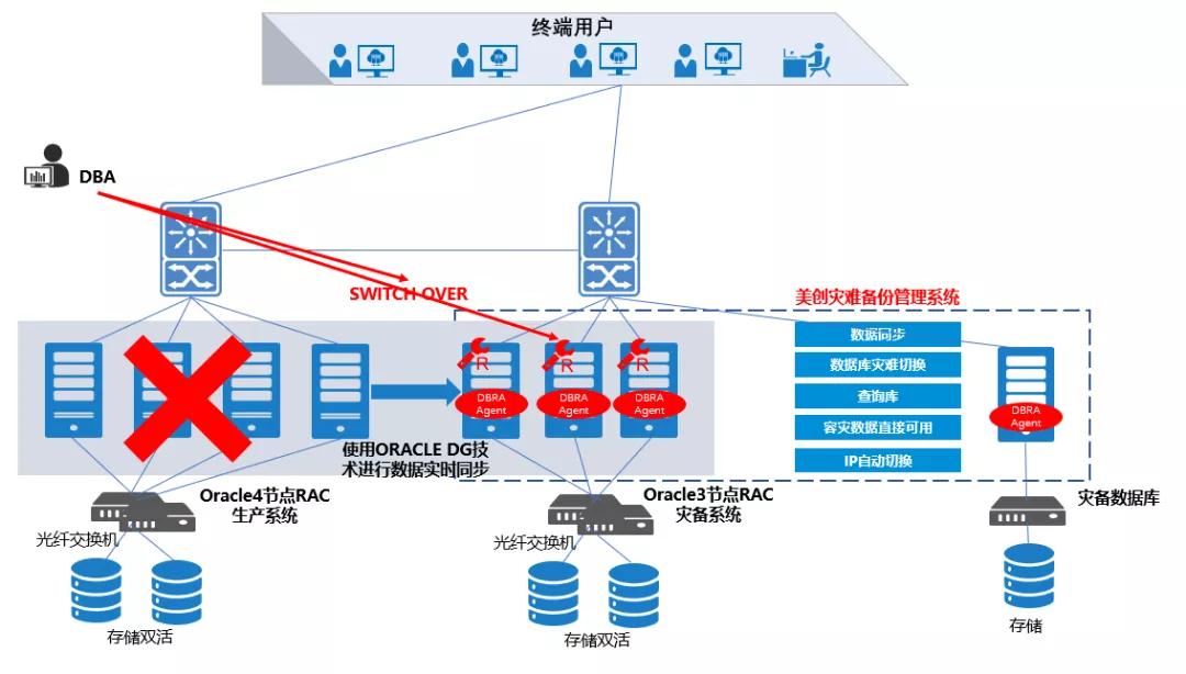 经过实际分析及评估,决定采用切换的方式将生产系统上的业务切换到灾备系统上,作为新生产系统使用,以解决原厂数据库物理坏块问题。