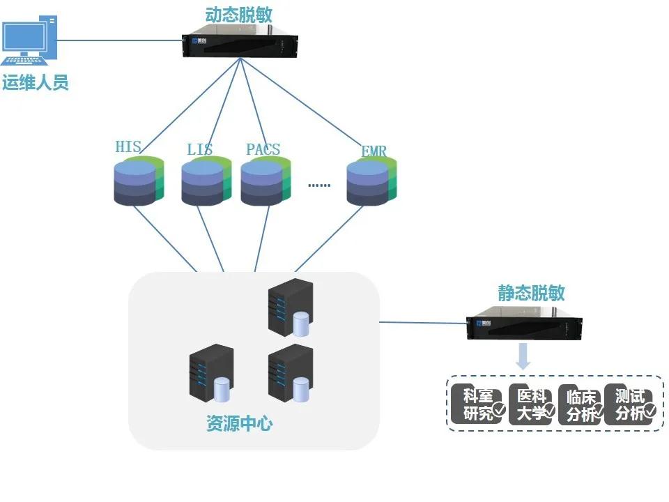 3、医科大学学术研究用数脱敏:对于医学院医疗和临床科研大数据研究用的数据,从生产系统脱敏后提供给各医学院使用。