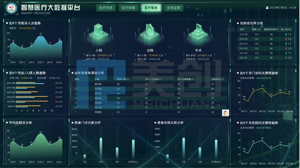 通过“医疗决策分析平台”,为医院管理者提供“一站式”决策支持信息服务,管理者能够便捷、直观、快速掌握医院运营状况。
