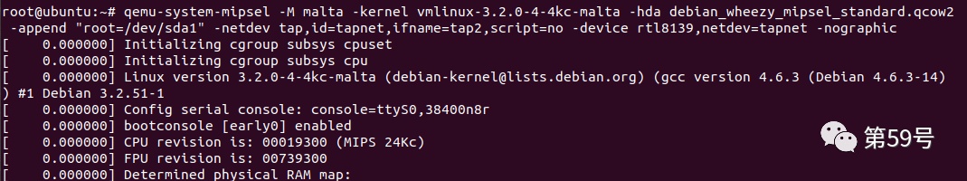 qemu-system-mipsel -M malta -kernel vmlinux-3.2.0-4-4kc-malta -hda debian_wheezy_mipsel_standard.qcow2 -append "root=/dev/sda1" -netdev tap,id=tapnet,ifname=tap2,script=no -device rtl8139,netdev=tapnet -nographic
