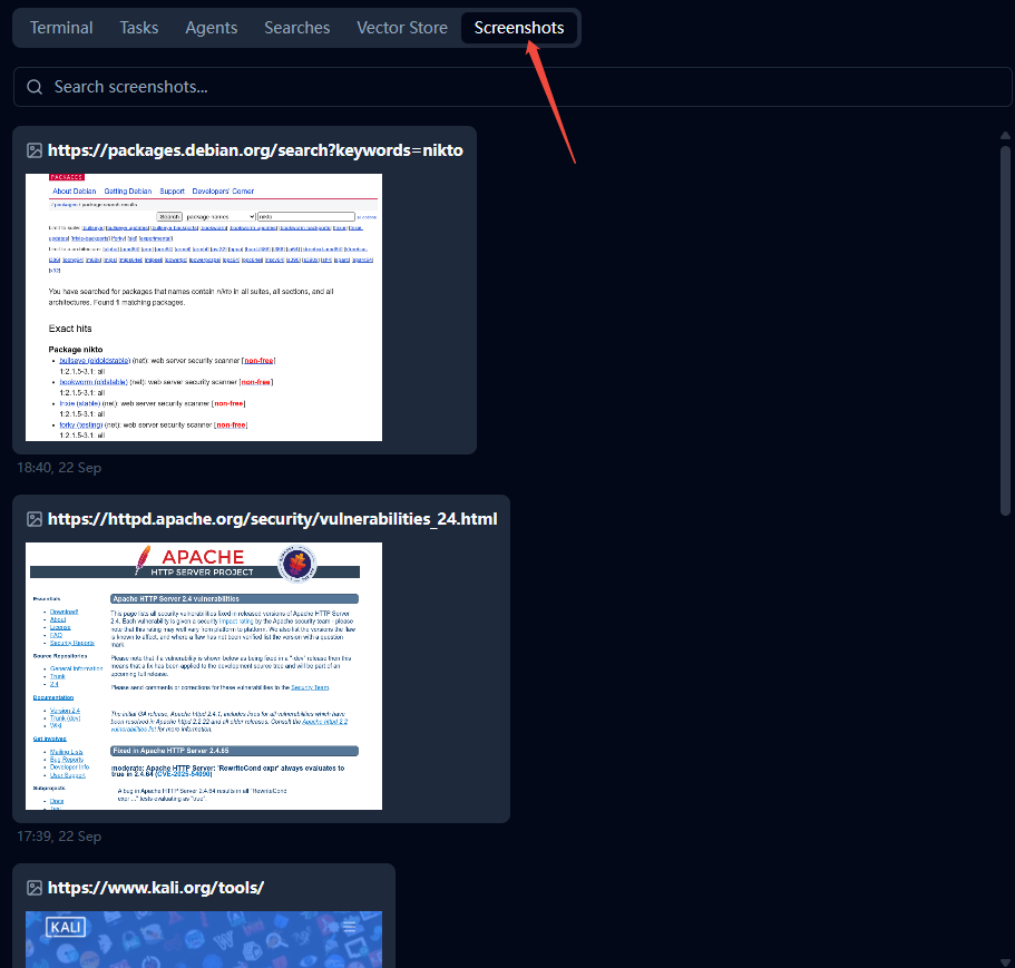 可以看到PentAGI会把任务分割为一个个子任务,然后针对每个子任务自动下载相应的安全工具进行测试。如nmap、sqlmap等。